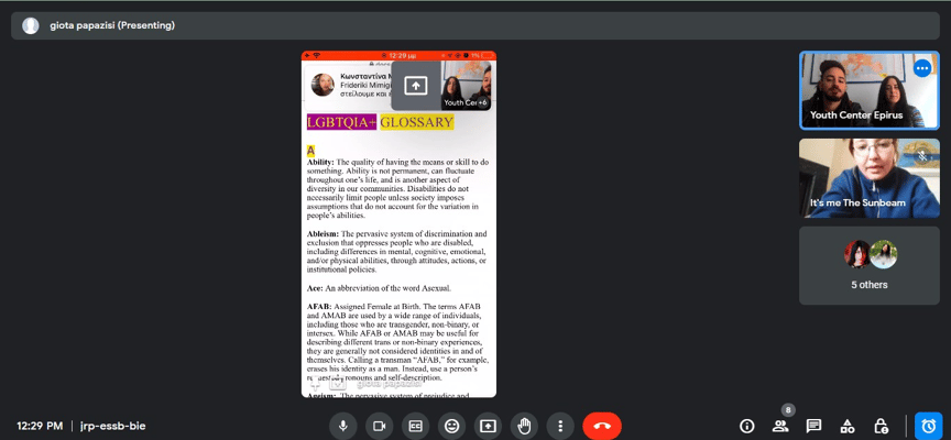 In the framework of the Erasmus+ programme, following the youth exchange "Erasmus LGBTQIA+", which took place in Lama Dei Peligni, Italy from 12 September to 20 September 2023, an online workshop was implemented on 11 December 2023 by the Greek team.