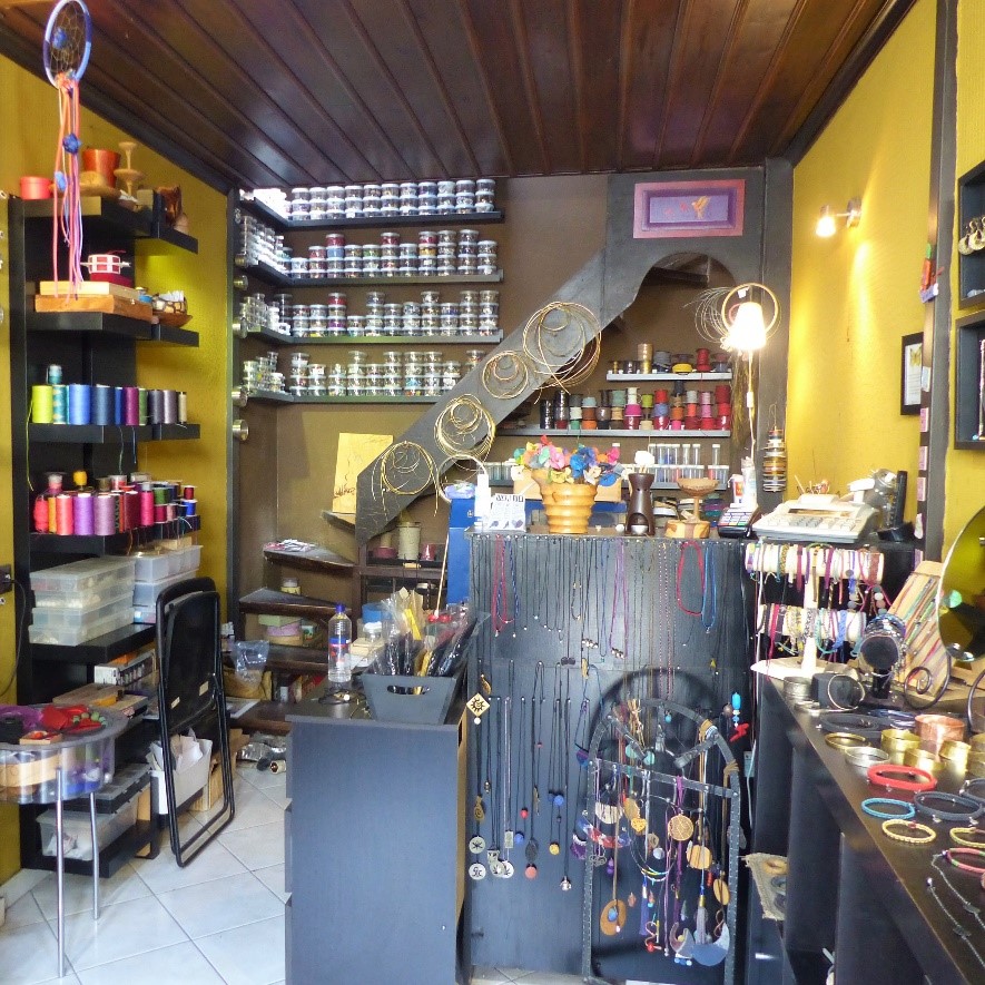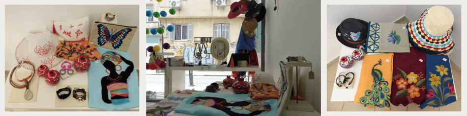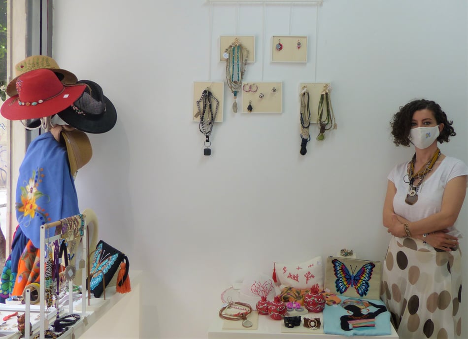 After that I had an opportunity to pursue my project: the government was supporting entrepreneurship through a funding program. So, I got this opportunity, and I went into it for one year; that is how I opened my business: my store. All the items that are here are handmade by women. So directly or indirectly we can say that we support women in business, and we provide unique products to wear and enjoy. Now that I have the shop, I also started creating my own designs.