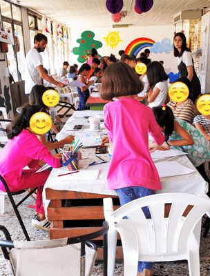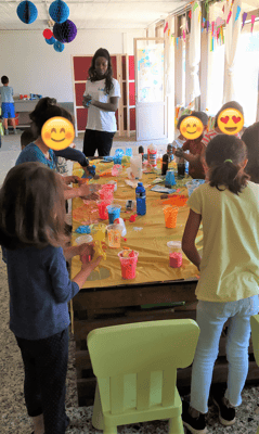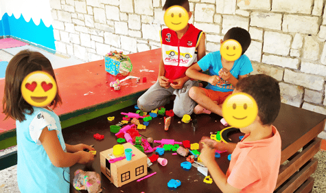 We developed two separated daily activity programs for children of age groups in 1-4 and 5-12 years old. To the younger group of children, we offered activities that would develop their social interaction, motor skills and understanding about the world around them. For the children in the older age group we offered activities that were recreational that would promote their English and Greek communication, team cooperation, artistic, creative and sports skills. Our activities were also designed to promote positive behaviour development in children and assist them in non-formal education on various topics in relation to the nature, hygiene, game play, friendship, etc.
